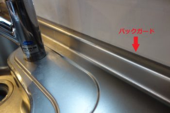 バックガードというのは、キッチンの後ろ側に水がいかないようにする折り返しのことです。こちらのクラッソはありませんので、見た目がすっきりしています。こちらも最近のトレンドで、つけないメーカーも増えてきました。ただ一長一短あって、後ろのタイルとシリコンコーキングで納めますので、どうしてもコーキングの部分が汚れてしまいます。お恥ずかしながらうちも少し汚れてきてます。これは覚悟してこまめに掃除するしかありません。