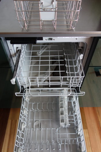 ちなみに「通いかご」っていう名前でこちらのステンレスのかごが付属しており、シンクに置いた状態で食器をセットして、カゴごとそのまま食洗器に突っ込めるという仕様です。ですが、うちではシンクにセットするわけではなく、食洗機にセットしたままで、食器を置いていきます。