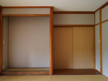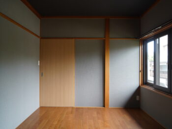 寝室です。既存の和障子を活かして、モダン和風にしました。