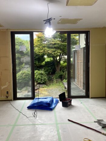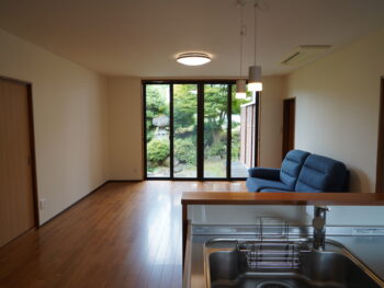 LDKの窓です。大きいハイサッシにしたので、とても明るいです。