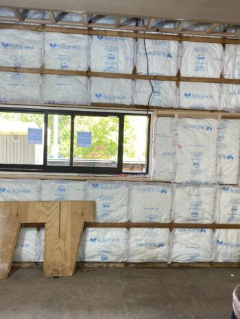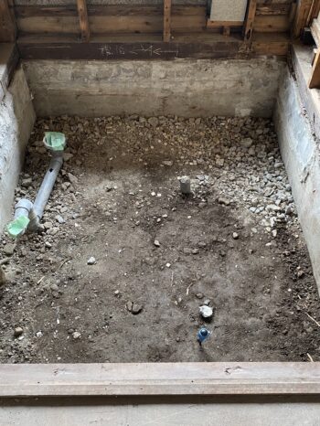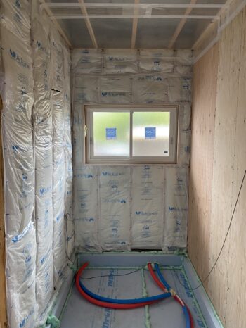 浴室に断熱材を入れました。土間もスチロールを敷いています。この中にユニットバスを組み立てます。