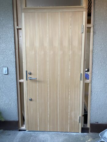 玄関ドアです。木製で断熱性能も高く、雰囲気もあります。